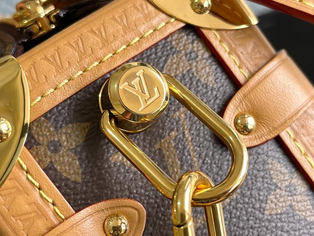 - الخامة: قماش مونوغرام LV الفاخر مع جلد طبيعي وحواف مُدعمة بمعدن ذهبي