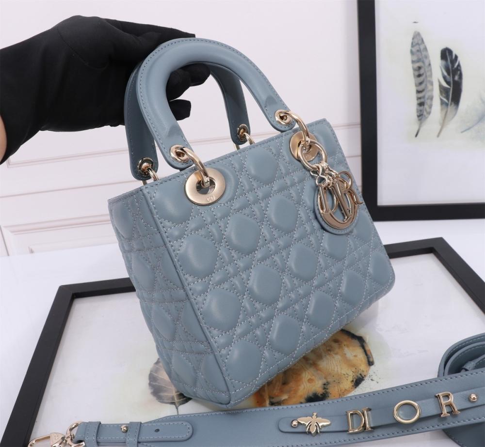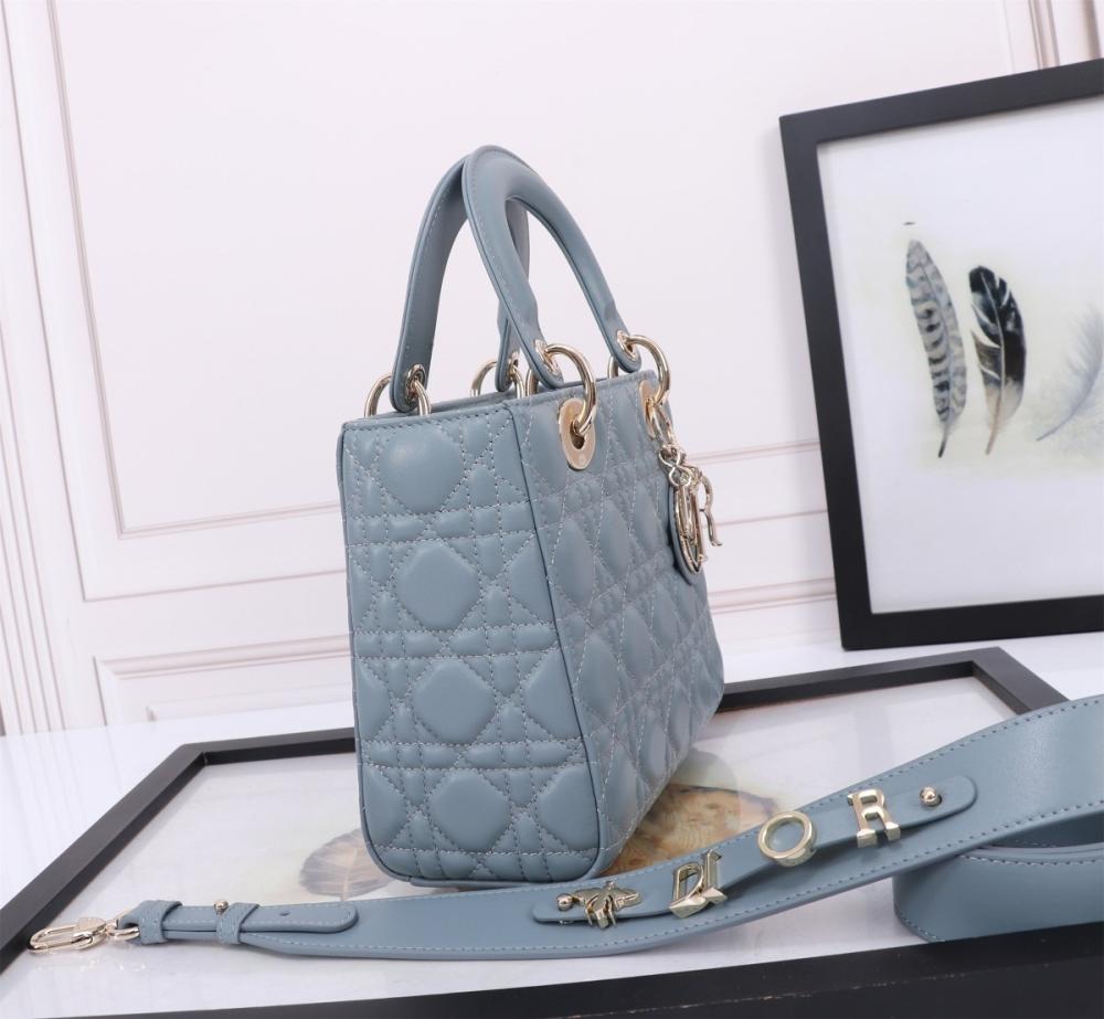 شنطة ديور مربعة بلون نيلي – جلد ماعز فاخر وأناقة متجددة