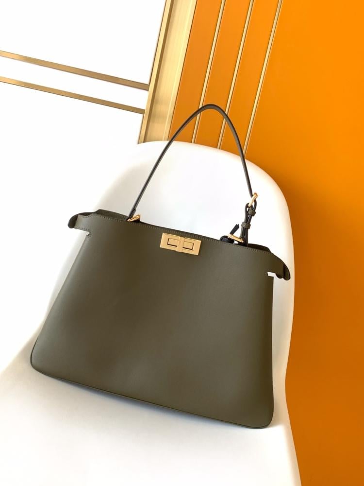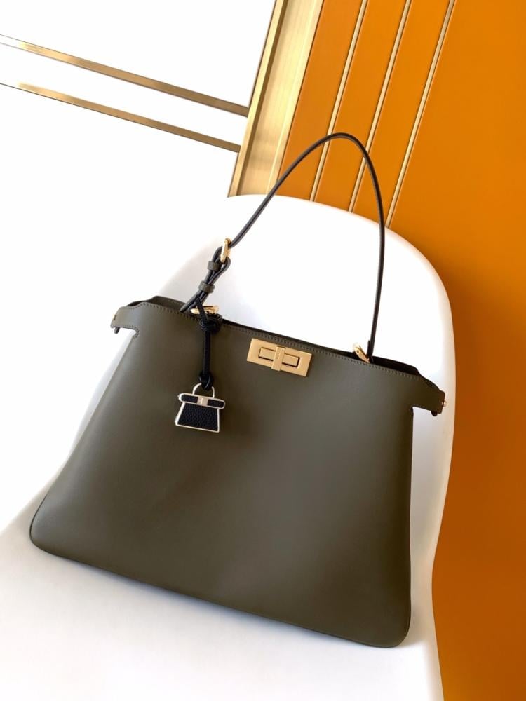 • شنطة فندي Peekaboo زيتي تناسب كل الإطلالات سواء للعمل، أو الاجتماعات، أو المشاوير، أو المناسبات.
